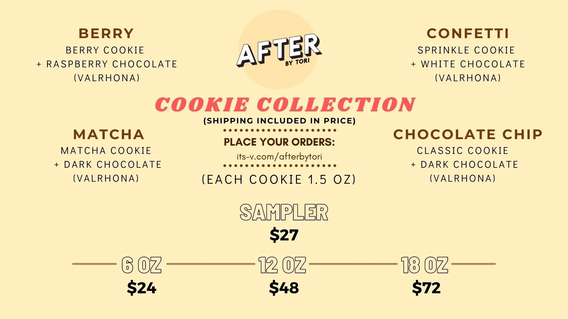 AFTER BY TORI is a registered Cottage Food Operation under Contra Costa County of California, United States. AFTER BY TORI is a licensed business of the City of San Ramon, California. AFTER BY TORI reserves the right to refuse service.Copyright 2025 After By Tori. This site, the contents and affiliations are protected under copyright law.